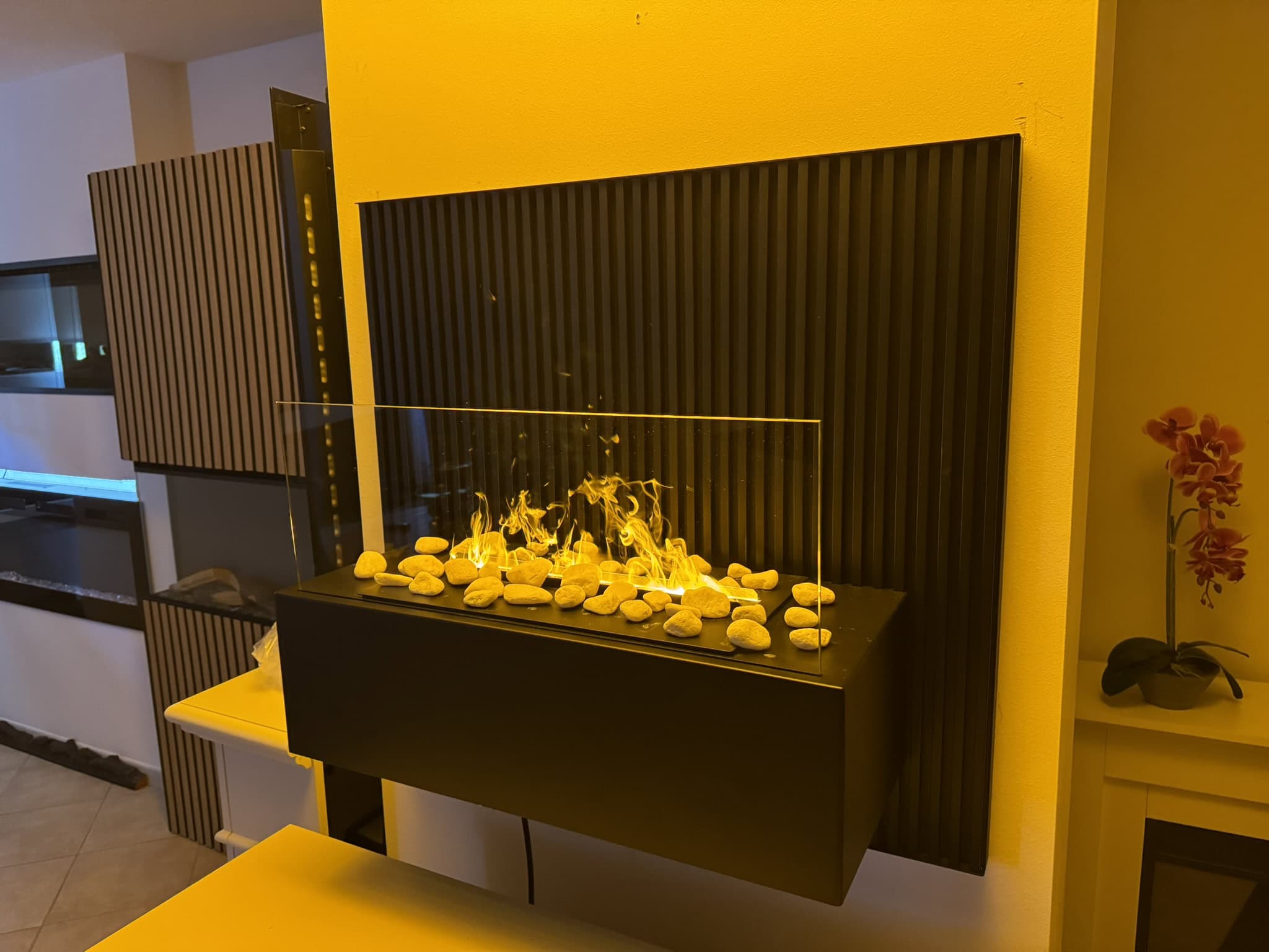 - Για το εφέ της φλόγας ατμού, αρκεί να γεμίσετε την δεξαμενή νερού και θα έχετε περίπου 10 ώρες συνεχόμενης λειτουργίας της τρισδιάστατης εικονικής φλόγας.