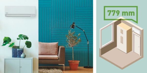 Οι εσωτερικές μονάδες έχουν πλάτος μόλις 779mm. Αυτό δίνει την δυνατότητα εγκατάστασης ακόμα και σε εξαιρετικά περιορισμένους χώρους.